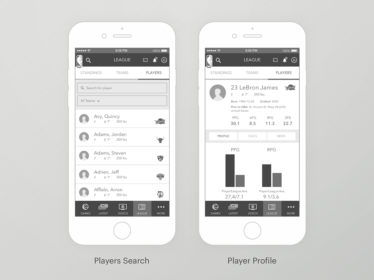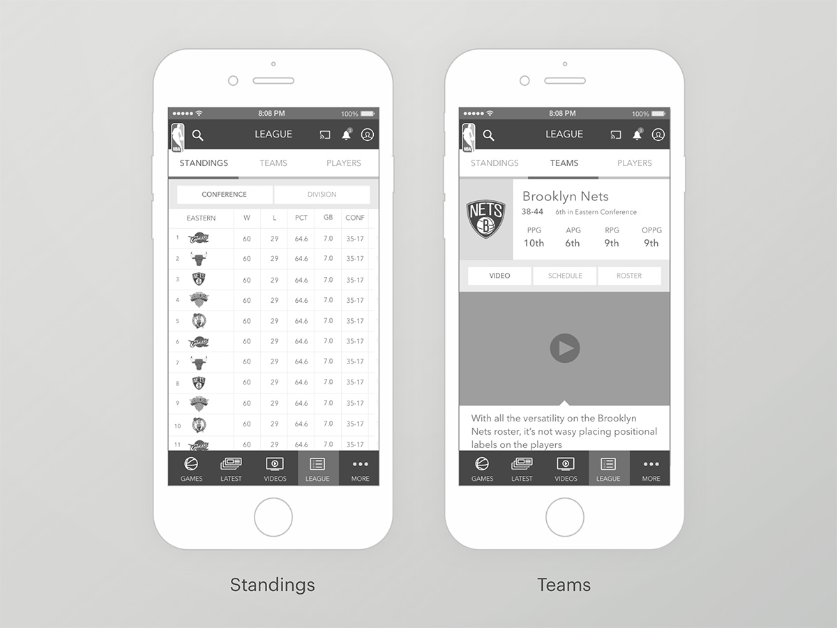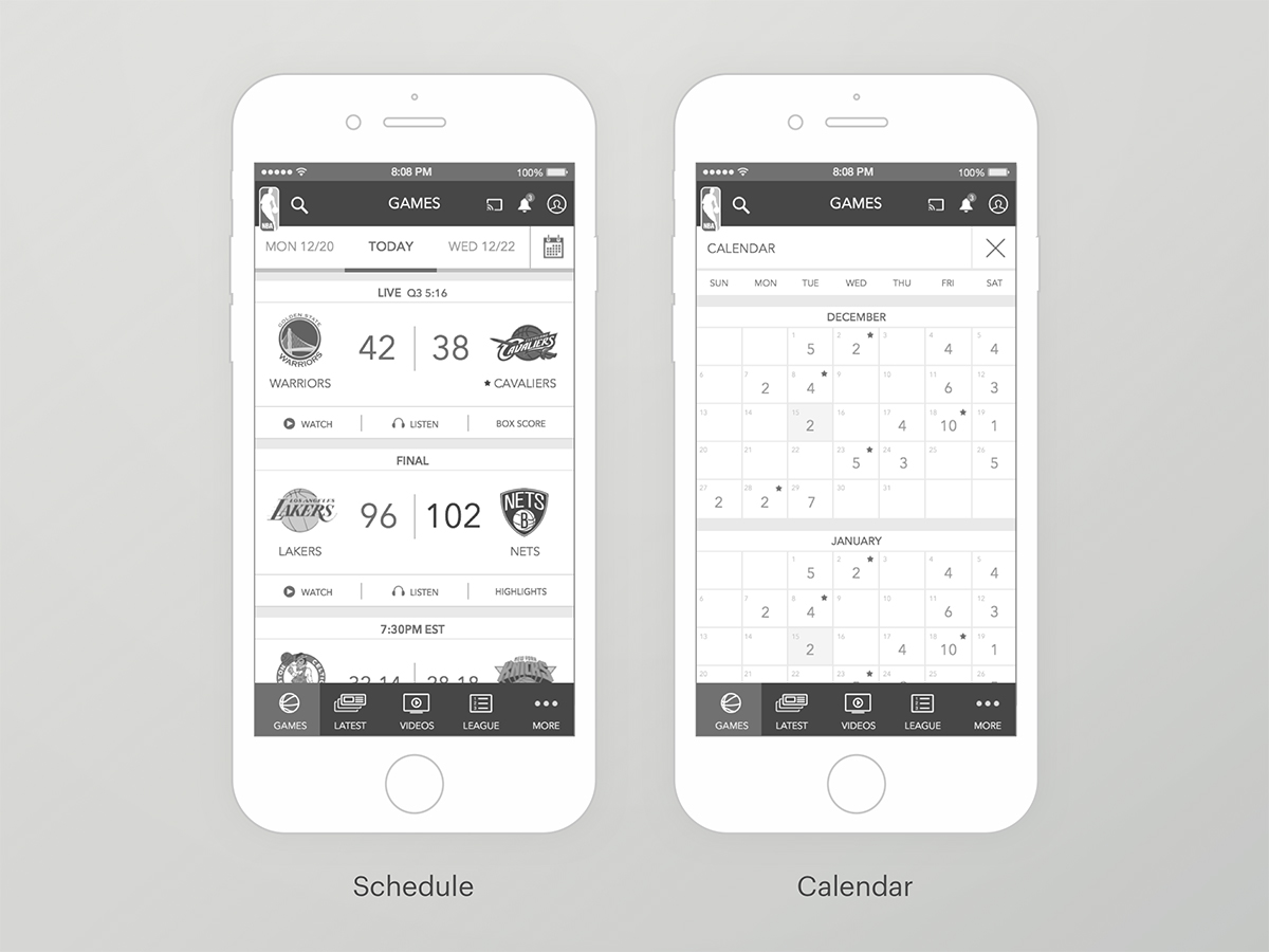 The NBA app has been redesigned from the ground up to accomplish three main goals: 1. to provide a unified and seamlessly designed experience for the user across all devices; 2. to allow for a highly-personalized content for each user through selection of favorite teams, players and notifications; and 3. to provide natural entry points to NBA LEAGUE PASS and NBA TV premium streaming content throughout the app.